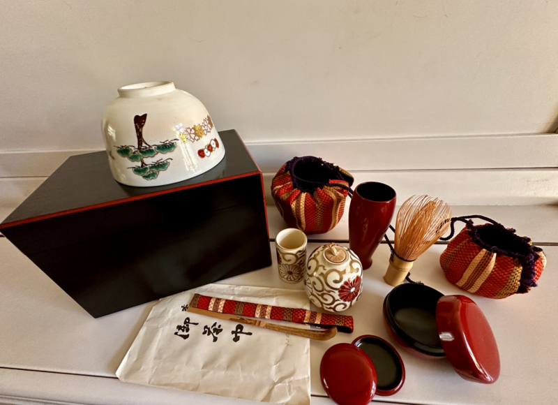 Orginele thee ceremonie set in gelakte kistThee-ceremoniebenodigdheden: