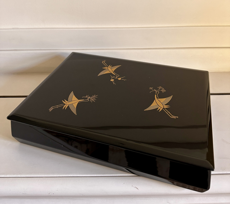 Sieraden / documenten doos in Japans lakwerk " vliegende kraanvogels"Sieraden / documenten doos in Japans lakwerk.