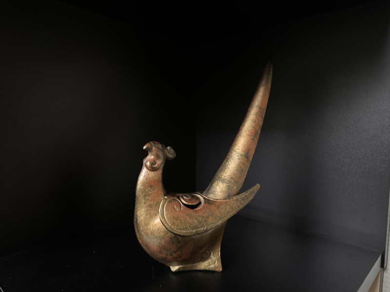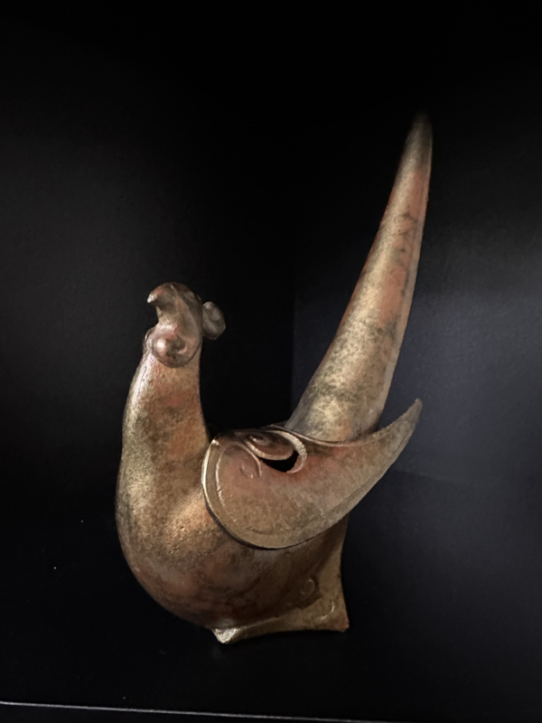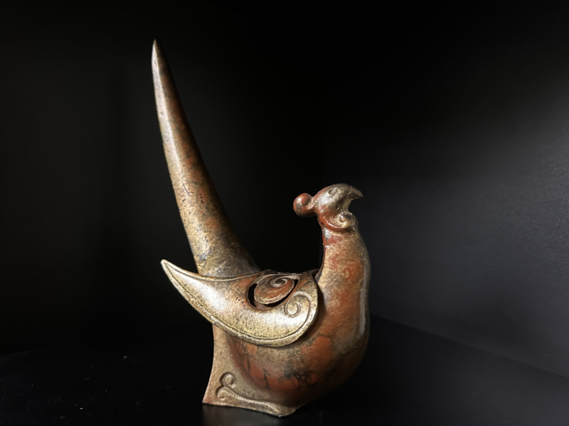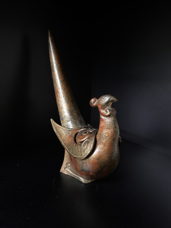 sculptuur van gepatineerd brons " Fazant" tevens geschikt als wierookbrander