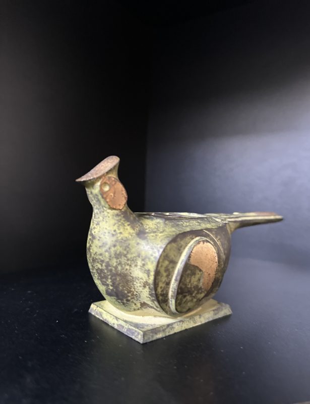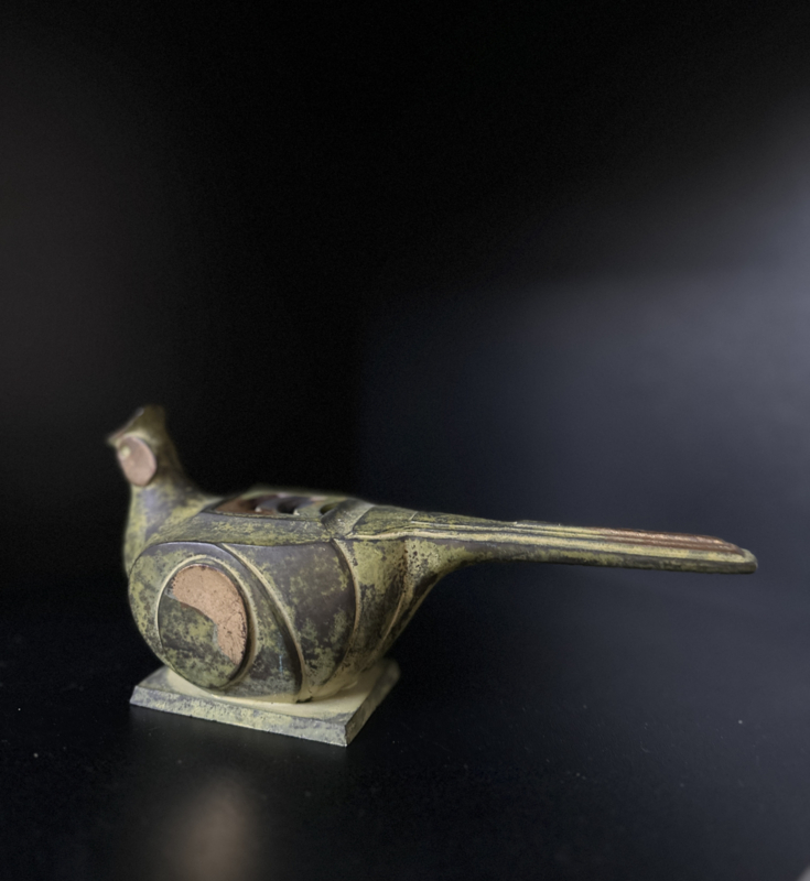 Sculptuur van gepatineerd brons " Fazant" tevens geschikt als wierookbrander