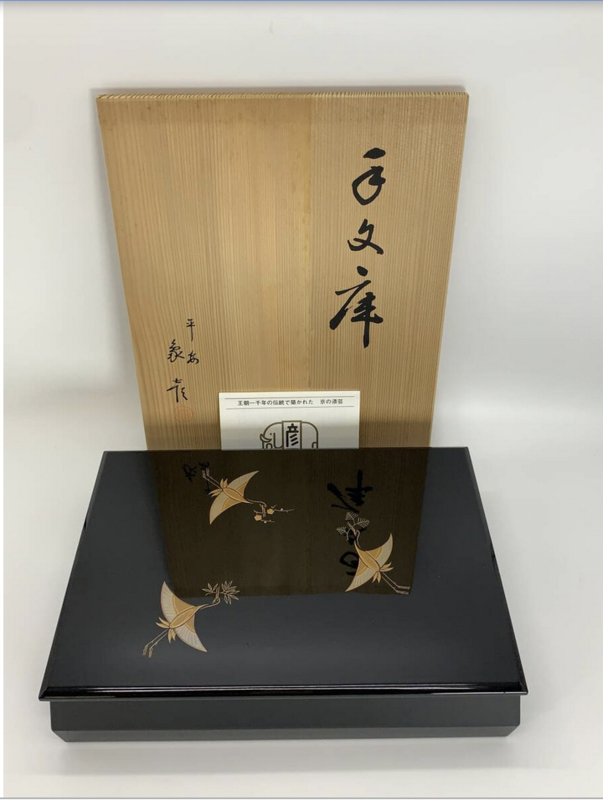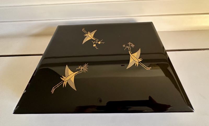Sieraden / documenten doos in Japans lakwerk " vliegende kraanvogels"
