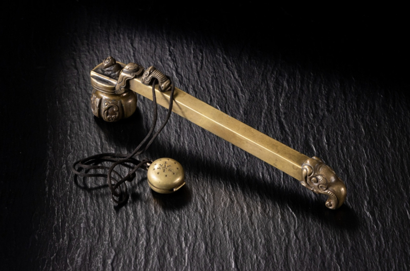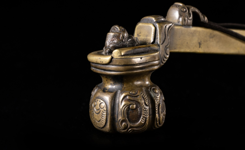 Uniek inktpotje met prachtige decoratie in brons. "Yatate"